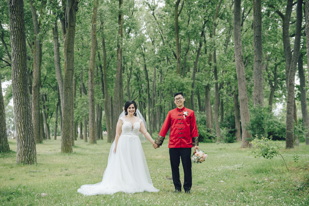 Becky now in white and borrowing her mother’s wedding veil, we start a portrait session. At the venue, in the courtyard, down by the water at Polson Pier, in Underpass Park, and under my daughter’s rainbow umbrella I happened to have in my trunk – a little wedding day nod to Pride. I love the cloud cover shrouding the Toronto skyline and these dress-up skatepark scenes. As we’re finishing up, the rain comes down. And some. A welcome omen. Just in time to get inside and have a wedding.
