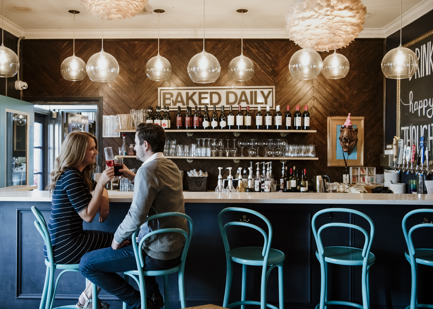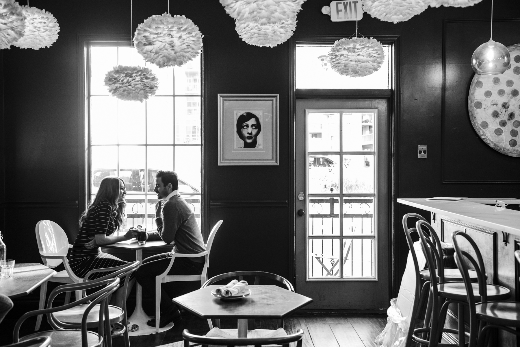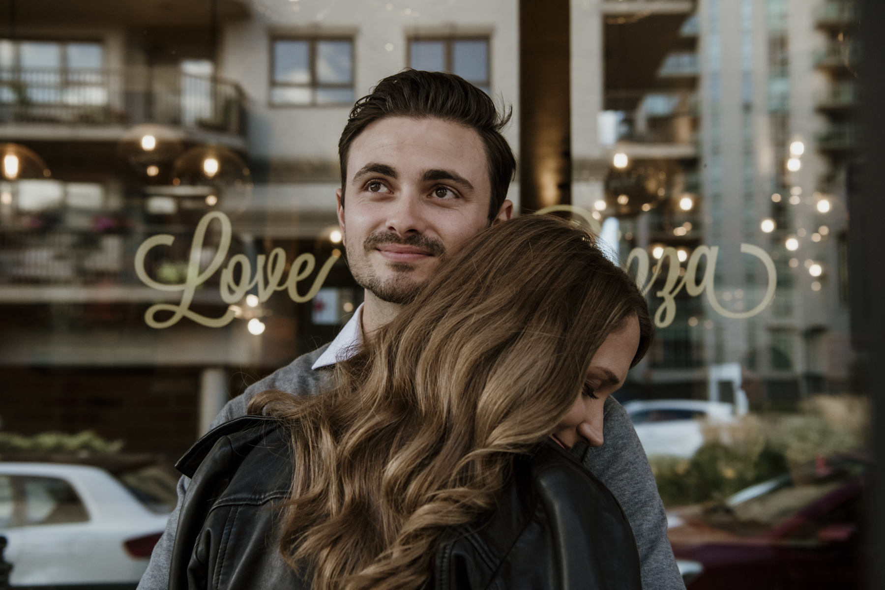 When coming up with a plan for an engagement shoot, I (obviously) want to take my cues from the couple. Where do they like to roam? What do they like to do together? Since this is the town where they live, and these are the places that they will likely return to again and again, why not make these the backdrop of their memories, past and future. I love how the play between history and the future is always popping up in the making of images. Will they return to this pizzeria on their 1st anniversary? Will they take their children to this ice cream joint, then take them home to show them this photo of their younger selves? It also doesn’t hurt that these two were brimming with the excitement and anticipation of their wedding day, right around the corner. Can you see the romance? I hope so. Way to rock a photo shoot Ivona & Niko. Your wedding pics are rolling in with winter. Stay tuned! xo