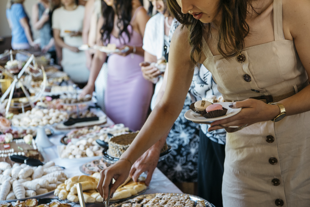 Do you enjoy desserts? That really is the question here because, save for the nice lunch, a few spirited party games and some prizes, oh and of course, the very lovely bride 😀 – all this event is really about are the desserts. Every shape and size, modern and traditional, sweet with salt, sweet with sour, buttery sweet, sugar on pastry, sugar on custard, pink icing, pink macaroons, chocolate and caramel and rice krispies with gold flecks! a carousel of cupcakes! caramel corn and baklava! There was no end to it. I could hardly believe my eyes. the smell of sugar in the room was so distracting I could barely stay focused on doing my job – a career challenge I had not considered before.