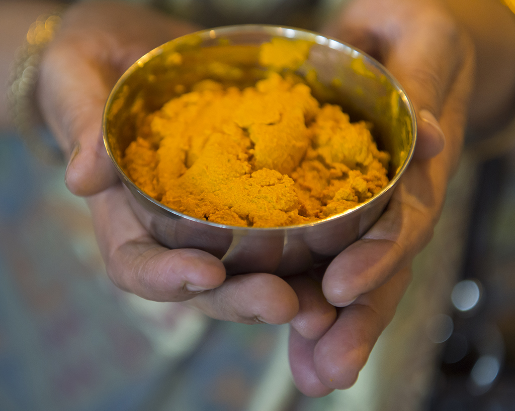 Then the Haldi. This is specifically a Bengali tradition, where the mother of the groom creates a paste out of turmeric, rubs some into the face of her son, and then offers it out to everyone in attendance, to do the same. Once the groom is successfully turned into a yellow-faced man, the paste (specifically the same paste, in the same container) is passed from the groom’s mother to the bride’s mother, who then similarly smears it onto her daughter’s face and then offers it out to the guests again for their willing participation. Turmeric is known to cleanse, soften and brighten the skin.